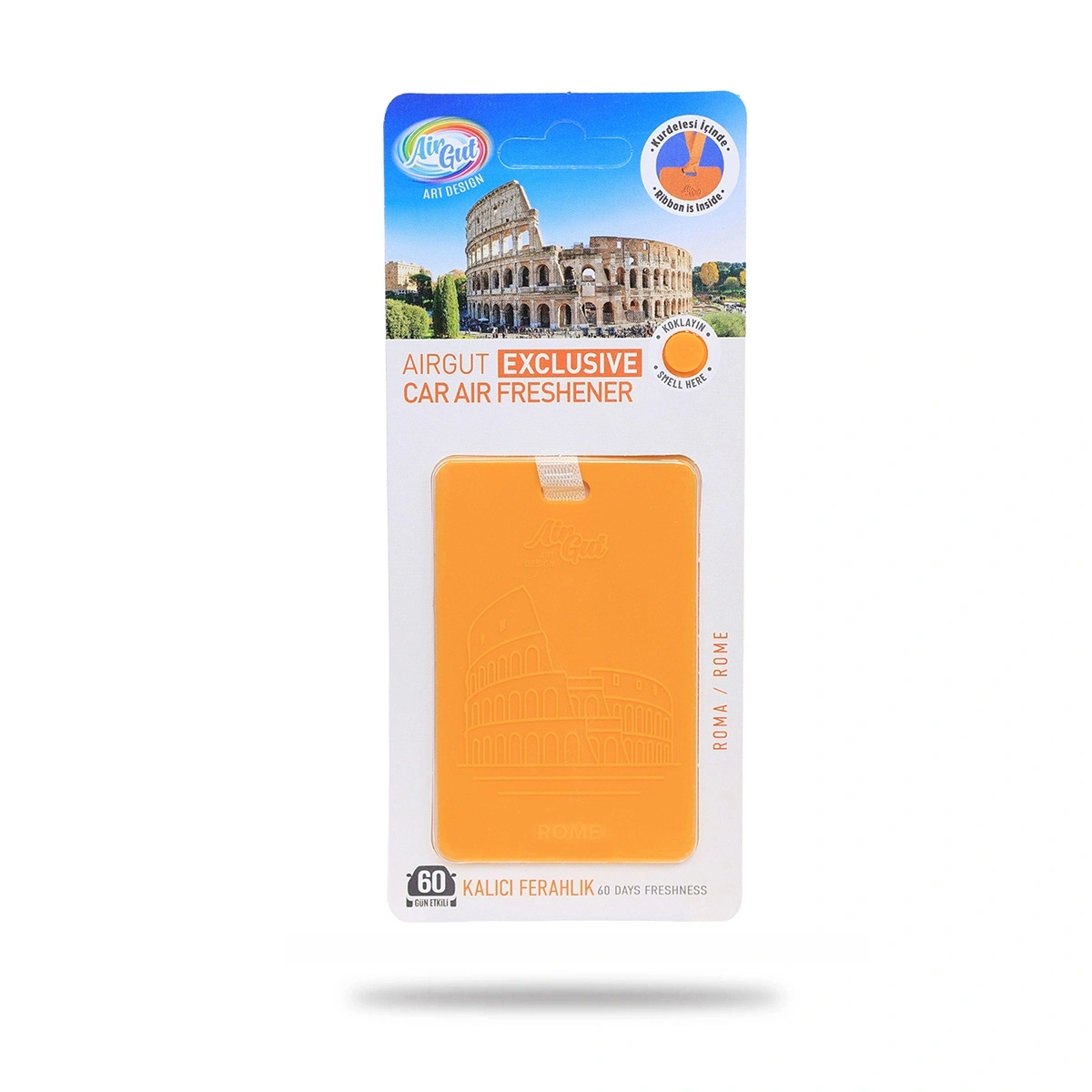 Seçkin bir tasarıma ve farklı koku seçeneklerine sahip AirGut Araç İçi Ferahlatıcı asıldığı yerden aracınızın içine süzülerek keyif veren bir ferahlık hissi yaşamanızı sağlar. Aracınızdaki inatçı, kötü kokuları yok ederek 60 gün süreyle kalıcı, hafif ve taze bir koku bırakır.
